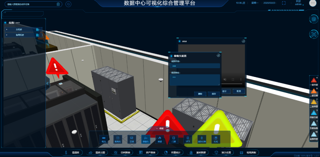 数据中心3D可视化系统是集于3D建模、三维场景仿真、视频监控、目标跟踪、告警监控、2维和3维联动、Web发布于一体的三维监控系统软件。通过系统程序生成的虚拟模型,可对数据中心一切的物理对象进行查看、交互与分析,有效提升信息交互的效率、提高管理水平。