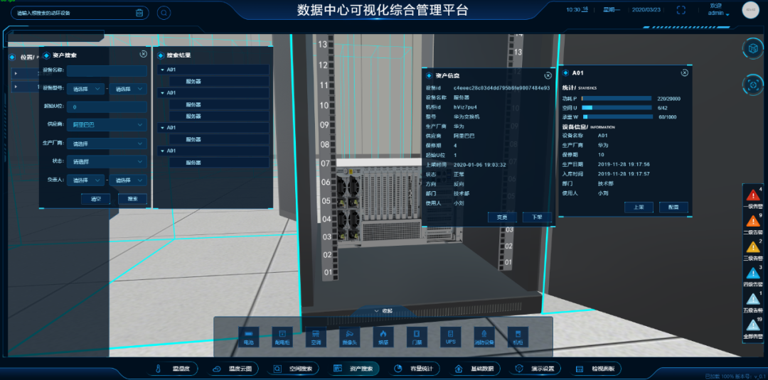 资产可视化主要帮助数据中心提升资产管理水平,减少在资产查找、盘点、统计方面的无效投入,通过资产信息与配置信息相结合,实现“账”“物”合一的管理模式,同时利用资产可视化的灵活查询,运维人员可以方便获取所需信息,从而有效支撑数据中心运维的过程。