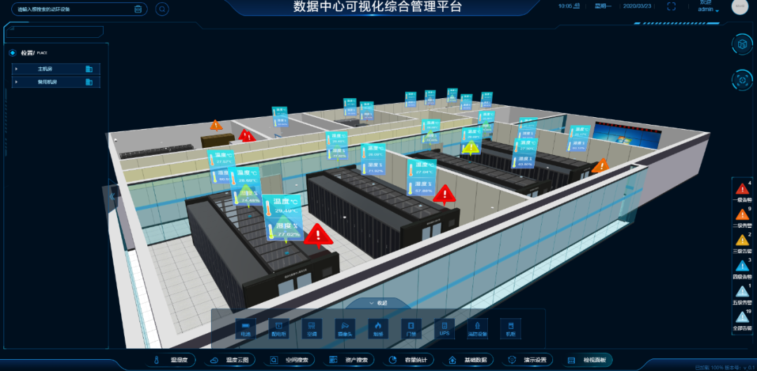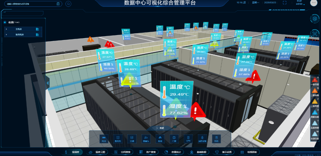 我们经常面临领导的参观、同行考察或工作需要,我们需要让别人了解我们的数据中心的状况,但由于分布地点广或别人缺乏兴趣与体力去实地考察。此时利用3D场景的互动形式来非常直观的展现数据中心的情况就显得十分重要了。