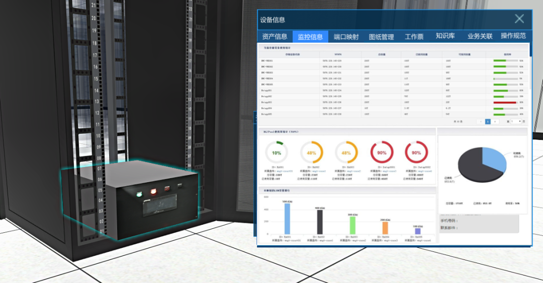 - 主机、网络设备、存储等架式设备建模查看浏览。